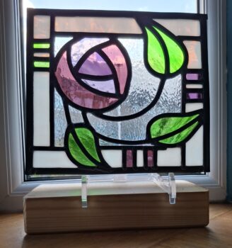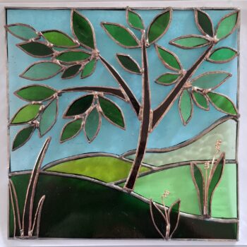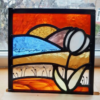 My journey into the world of glass design began in 2023 with an introductory course in stained glass. I realised quickly that glass is an addictive medium and, having added fused glass into the mix, I now attend weekly classes.